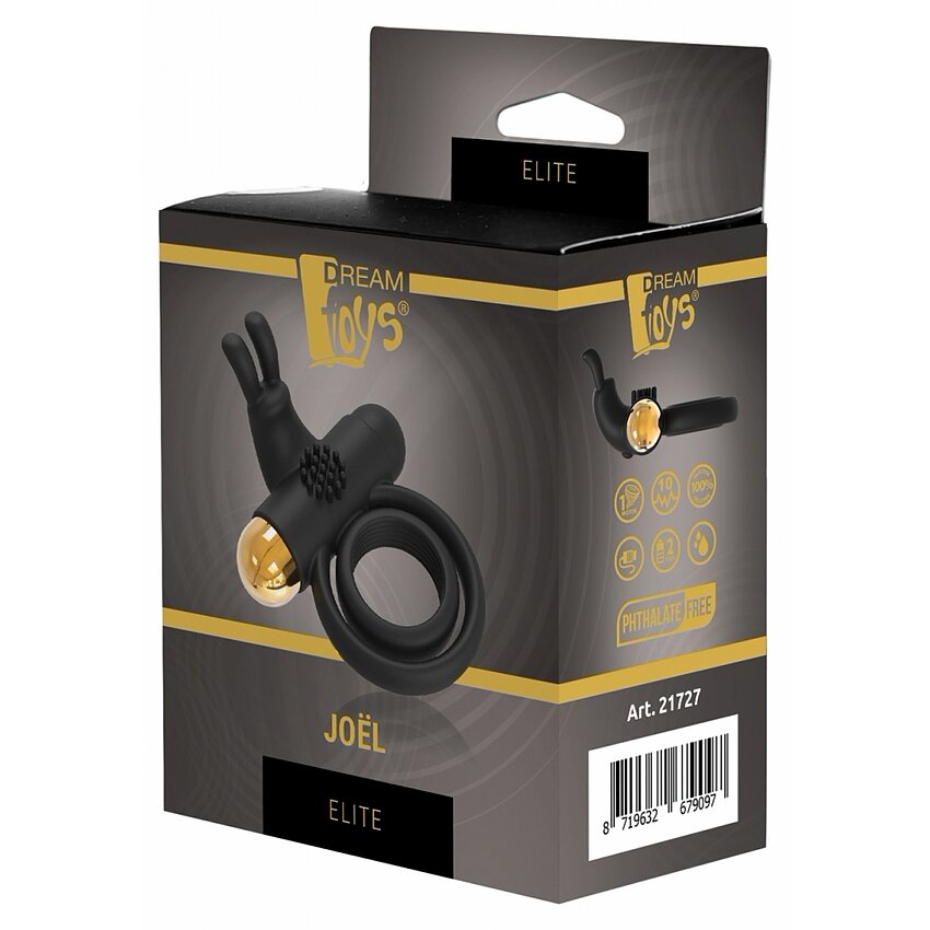 Acest Inel Vibrații Elite Joel Dream Toys este realizat din silicon medicinal, auriu și vine atașat cu un stimulator pentru clitoris în variantă de iepure.