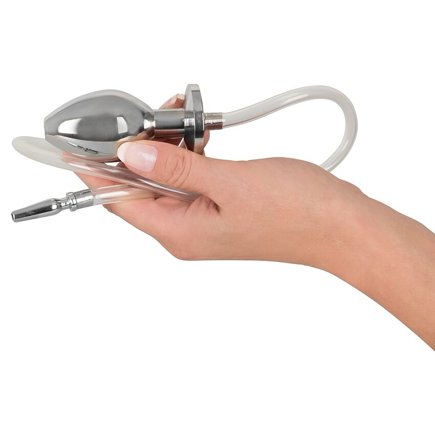 Pentru amatorii de plăceri anale și uretrale! Ștecherul gol, greu, este conectat la ștecherul deschis al penisului cu un tub. Include un tub de schimb negru.