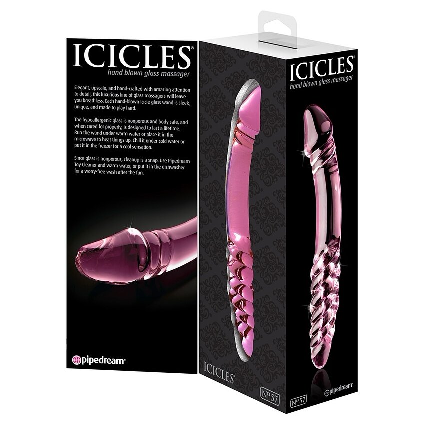 Un Dong de Sticlă Icicles No. 57 conceput manual, din geam de o extrem bună calitate. Un penis virtual special, cu o formă realizată pentru stârnirea intensă a Punctului-G, moale la contact și ușor de inserat.