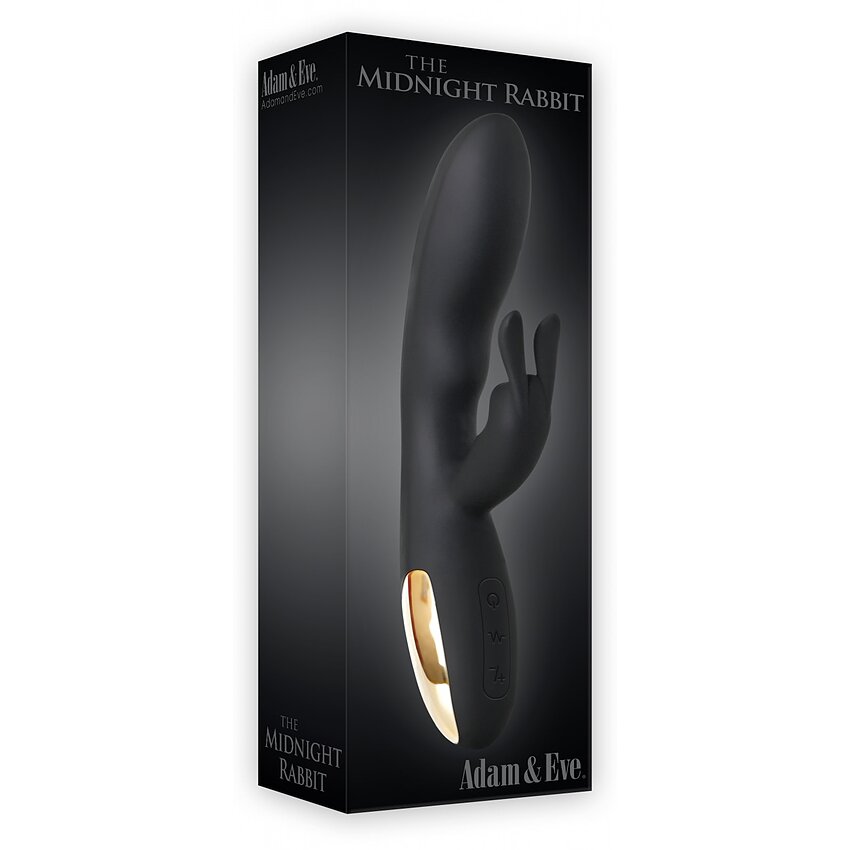 Un vibrator rabbit de lux, ce oferă un stil elegant și rafinat. Vibrator Rabbit The Midnight Adam & Eve este alegerea sigură, pentru desfătare și satisfacție garantată. Un silicon medicinal premium învăluie toată suprafața vibratorului. Detaliile aurii și culoarea mată unică îi furnizează acestui vibrator rabbit rafinament de lux, numai doar pentru tine. Stârnirea puternică a Punctului-G plus contactul clitorisului, schimbă acest vibrator bunny în jucăria sexuală perfectă. Reîncărcabil USB (cablu inclus), prietenos cu dermă ta și cu mărimi perfecte pentru începători.