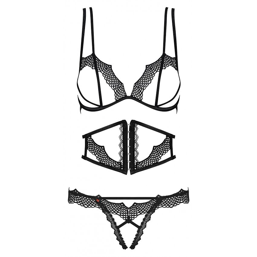 Set Obsessive Bravele închis la culoare este o piesă de lenjerie uimitoare și exagerat de fermecătoare, inventată și concepută de valorosul brand de lenjerie Obsessive din Polonia.