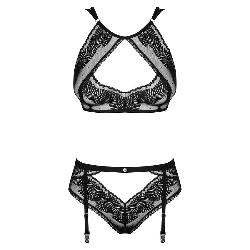 Set Obsessive Allastia Negru este un produs de lenjerie precoce și neînchipuit de seducătoare, redată vizual și realizată de prestigiosul brand de lenjerie Obsessive din Polonia.