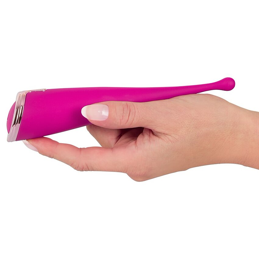 Stârnire la fața locului! Acest vibrator dă o plăcere perfectă! Vibratorul ajunge întotdeauna în zona adecvată care trebuie stimulată cu vârful sau rotunjit și subțire - fie că este vorba de mameloane, clitoris, punct P, perineu sau anus. Mărimea vârfului vibratorului Spot își atinge întotdeauna ținta iute și, odată ajuns acolo, bucură zona cu cele 10 chipuri de vibrație și suprafața mătăsos catifelată. Include un cablu USB.