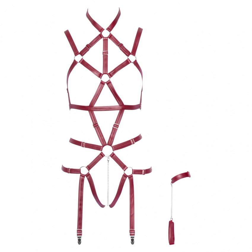 O costum captivantă într-un stil exclusivist! Un body extravagant într-un aspect de bondage. Body-ul este alcătuit din centuri moi care sunt confecționate dintr-un material elegant cu formă mat roșu închis.