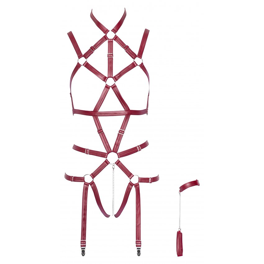 O ținută captivantă într-un design exclusivist! Un body extravagant într-un formă de bondage. Body-ul este alcătuit din curele moi care sunt fabricate dintr-un material frumos cu aspect mat roșu închis.
