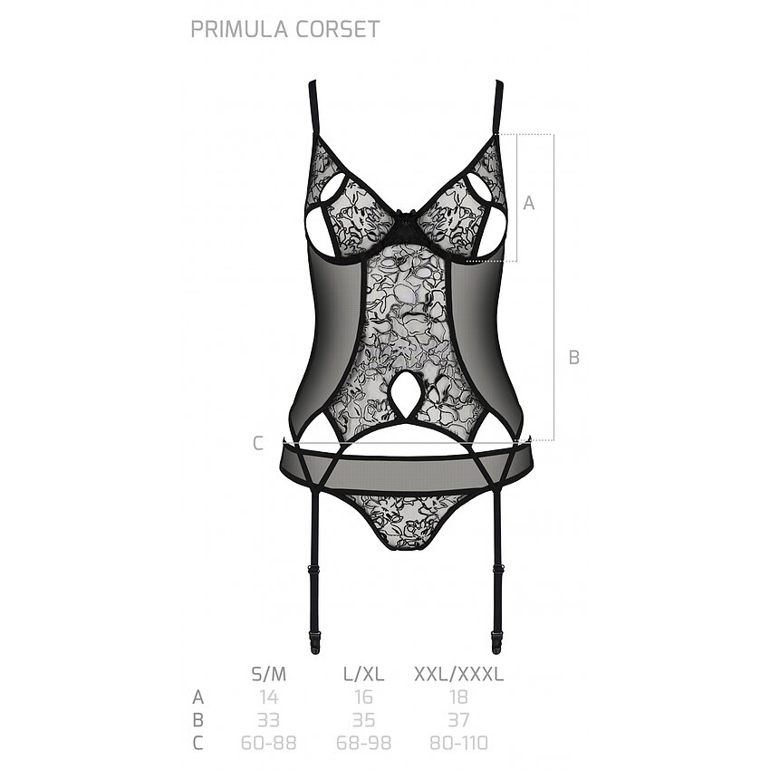 Corset Passion Eco Primula Negru este o piesă de lenjerie fantastică și incredibil de captivantă, gravată și fabricată de însemnatul brand de lenjerie Passion din Polonia.