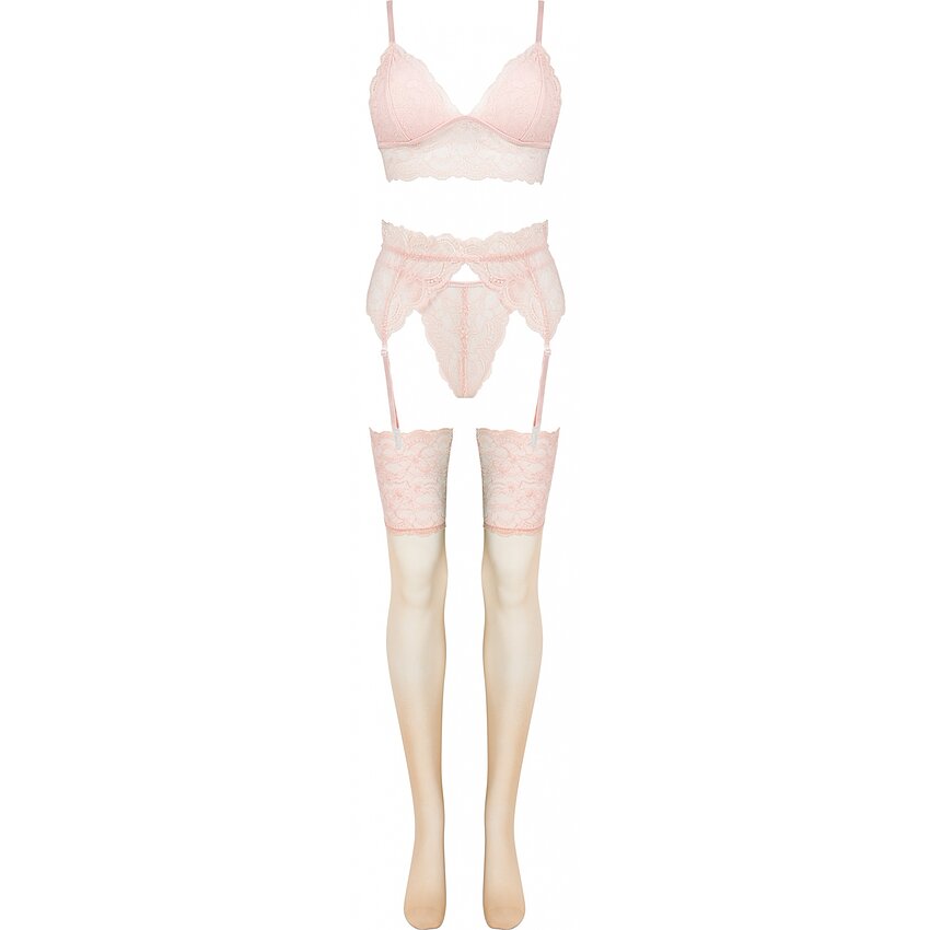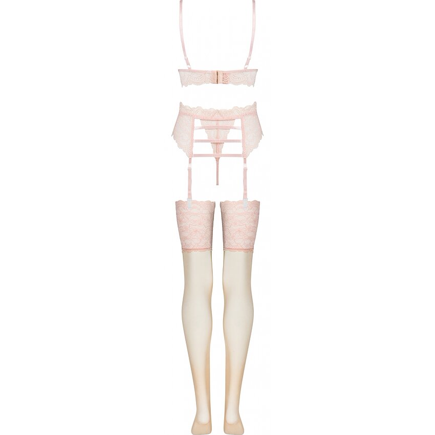 Setul conține sutien, chilot, port jartier și dresuri. Produsul este fabricat dintr-un material elastic si se potriveste marimilor S si M.