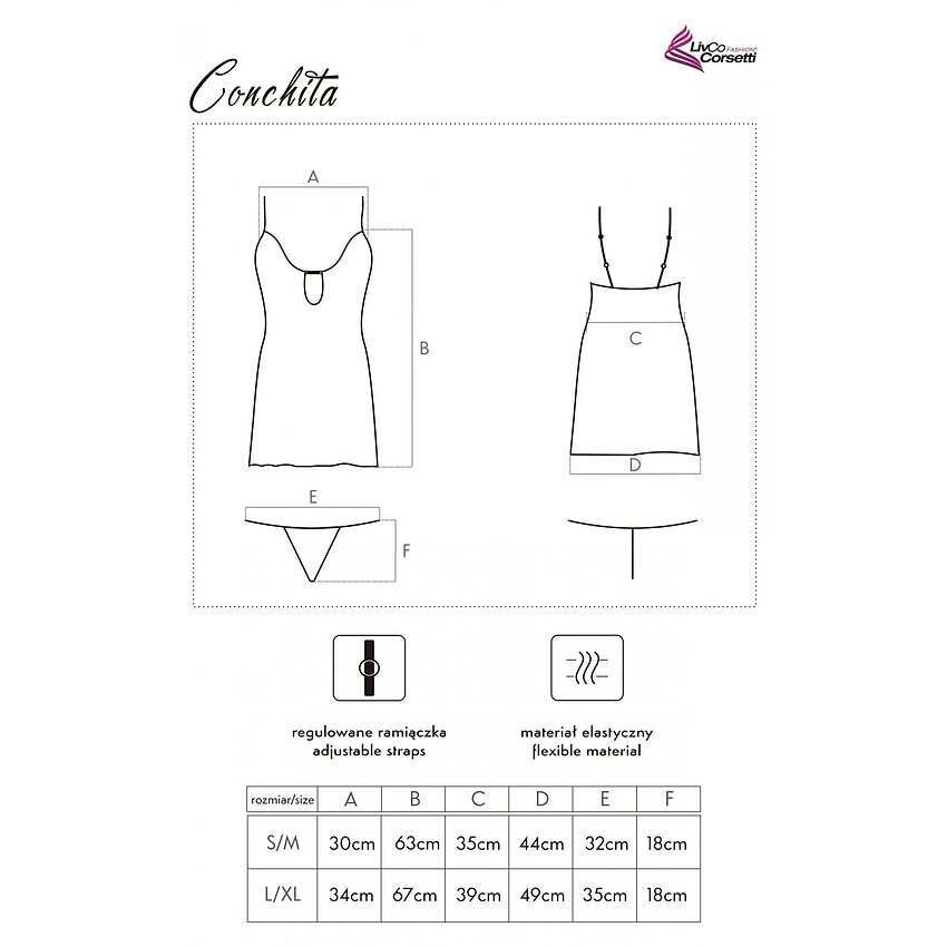 Chemise LivCo Conchita Negru este o piesă de lenjerie uluitoare și incredibil de încântătoare, reprezentată grafic și realizată de remarcabilul brand de lenjerie LivCo din Polonia.