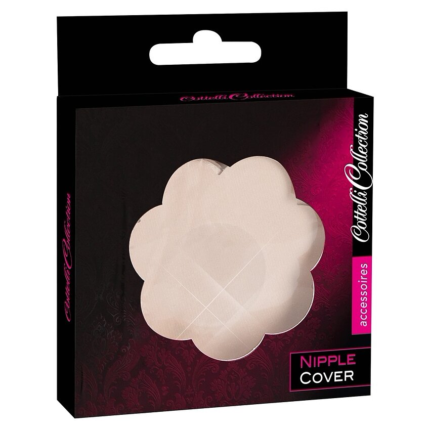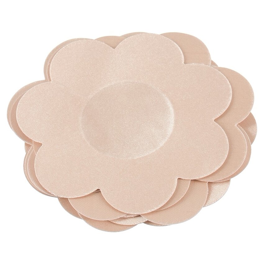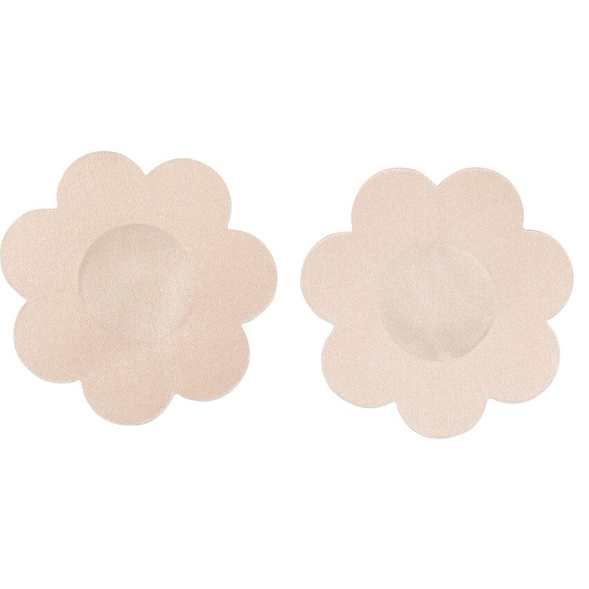 Autocolante moi și de culoarea dermei cu acoperire adezivă pentru a se lipi pe mameloane. Produs din material textil și silicon. În configurație florală