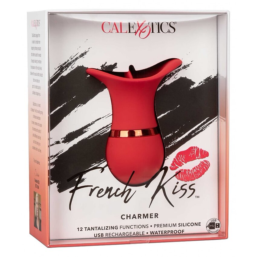 Stimulator Clitoridian French Kiss Charmer este un stimulator-limbă gata de călătorie, creat pentru surescitarea senzuală. Aparatul de masaj compact se potrivește perfect între degete pentru a dărui o bucurie puternică, cu 12 funcții sexuale de acțiune de pâlpâire prin carcasă integrală și vârful limbii.