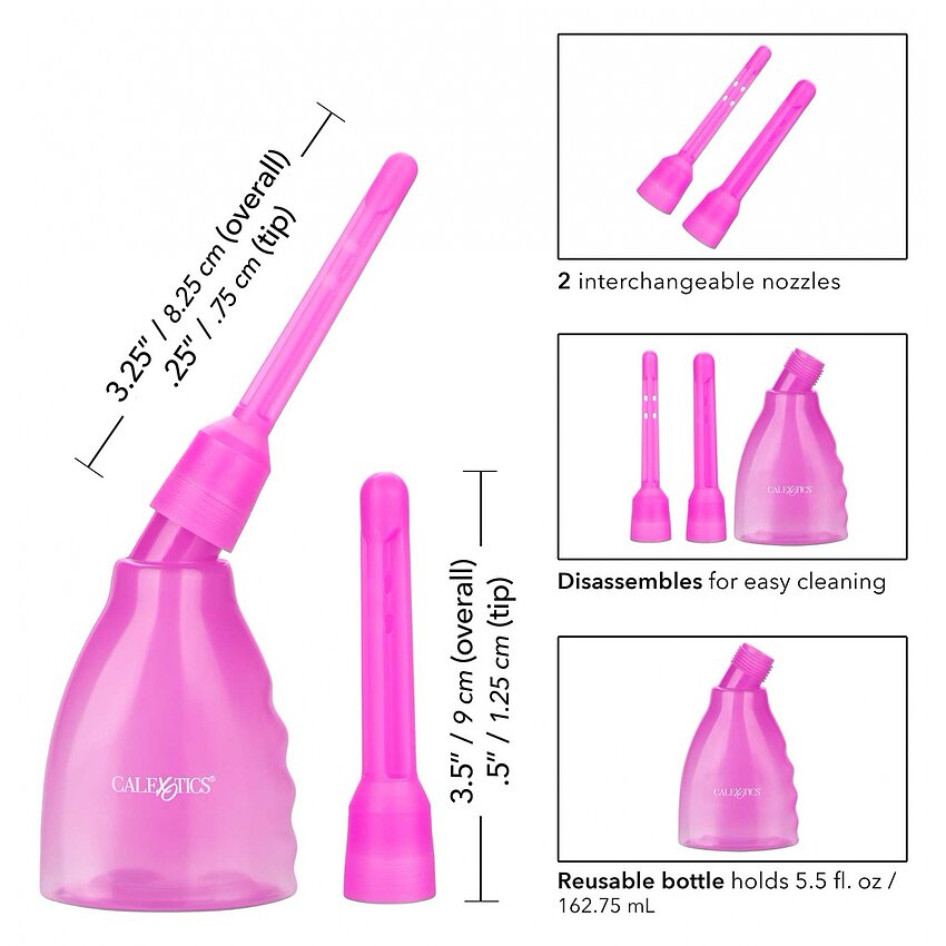 Instrumentul de Curățare Intimă Absolut Roz vă furnizează soluția perfectă - o combinație de eficiență și delicatețe în îngrijirea intimă. Acesta include o sticlă reutilizabilă de 162 ml și două capete interschimbabile, toate confecționate din polietilenă sigură pentru corp. Un design compact, cu o mărime de 8,25 cm și un diametru de 0,75 cm, îl face confortabil și discret de utilizat.