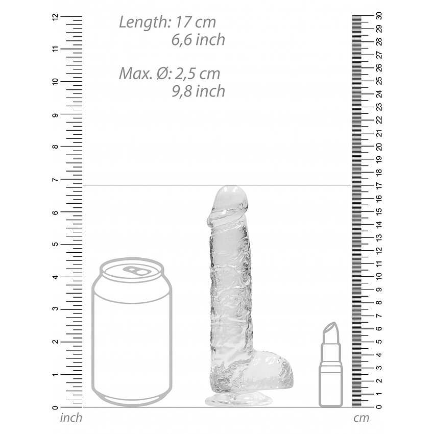 Lungime Totală: 17 cm Lungime Inserabilă: 12.5 cm Diametru: 2.5-3.1 cm Culoare: Transparent Material: TPE Livrare: Confidențială Are Ventuză Brand: Shots