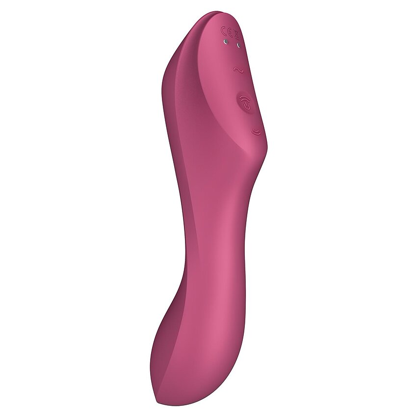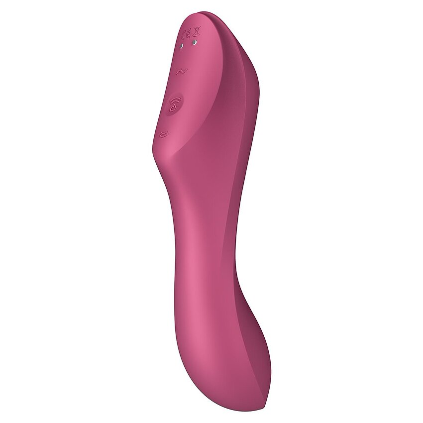Vibrator Curvy Trinity, este un construit al brand-ului Satisfyer cu stimulare triplă și 3 motoare de putere. Creat pentru a oferi plăcerea supremă, acest Vibrator Curvy Trinity 3 are o înfățișare ușor arcuită pentru a permite atingere punctului G și un stimulator pentru clitoris cu sucțiune. Este dotat cu 11 programe de presiune și 12 funcții de vibrații delicioase ce pot fi controlate separat sau pot fi combinate între ele, pentru senzații puternice și de neuitat.