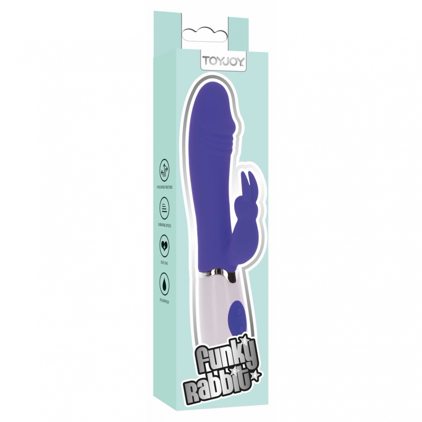 Funky Bunny este un vibrator distractiv, puternic, într-o culoare vie. Designul conține un stimulator de clitoris în stil iepure.