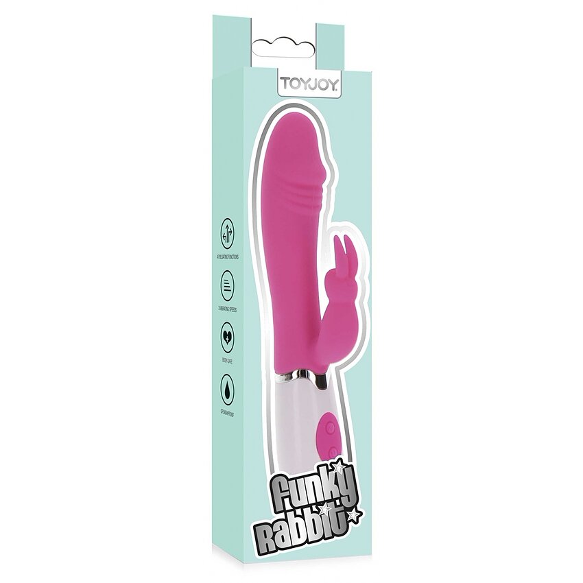 Funky Rabbit este un vibrator distractiv, puternic, într-o culoare vibrantă. Designul include un stimulator de clitoris în stil iepuraș