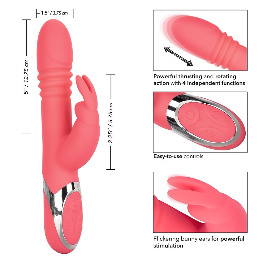 Pe mărime ce se învârte în sus și în jos, un stimulator de clitoris moale se întinde de jos pentru a te răpi pe tine sau pe clitorisul partenerului tău cu 12 moduri de vibrație. Bucurați-vă de ele cu sau excluzând împingerea arborelui, funcțiile sunt comandate separat pe o interfață simplă.