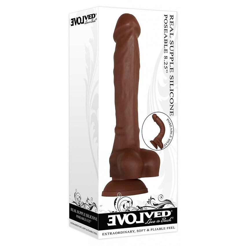 Dildo Evolved Real Supple Poseable 8.25, flexibil și super mătăsos și zdruncinat, acest dong cu nuanță maro bogată din silicon real suplu se simte exact ca un lucru real și persistă acolo unde îl puneți!