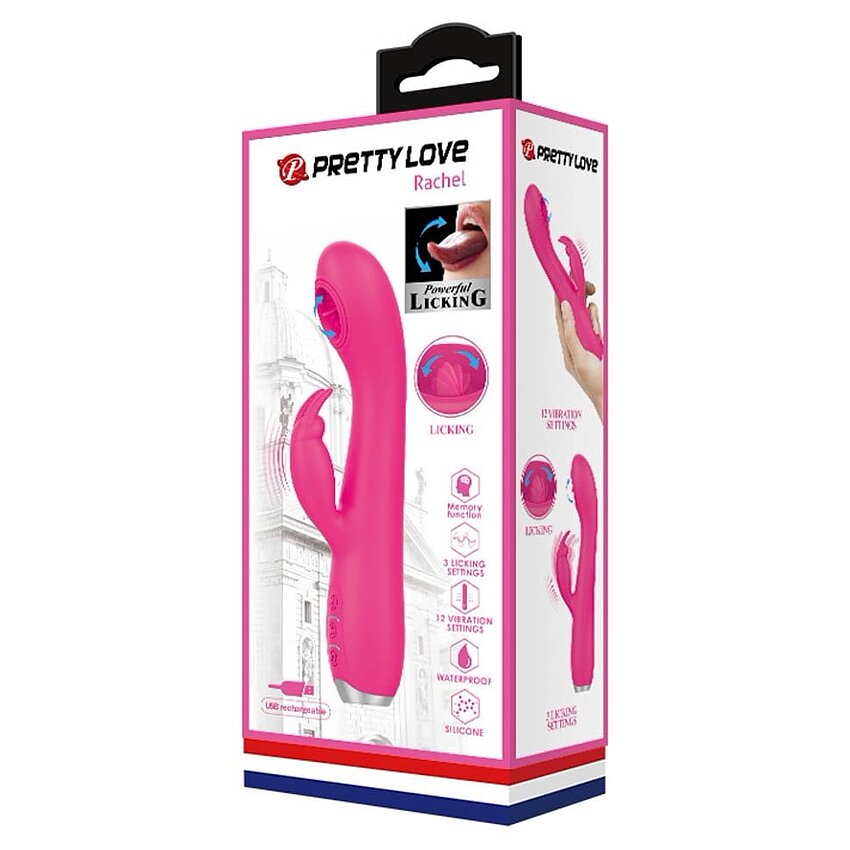 Pretty Love Rachel este un vibrator rabbit din silicon ce are 19.9 cm extindere și un calibru de 3.5 cm în cel mai mare punct.