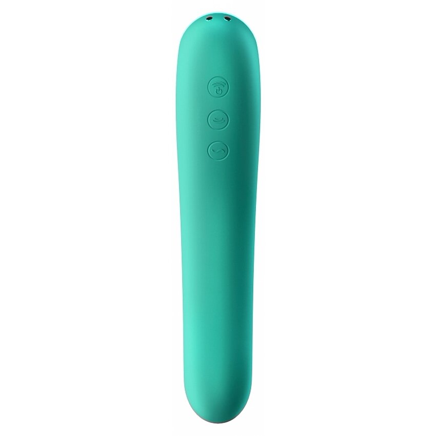 Vibratorul pentru clitoris Dual Kiss Green Satisfyer este confecționat din silicon, are 19 cm lungime iar în calibru 3.8 cm.