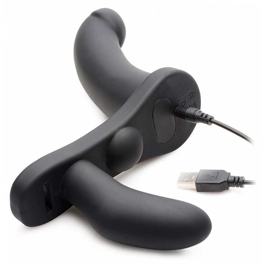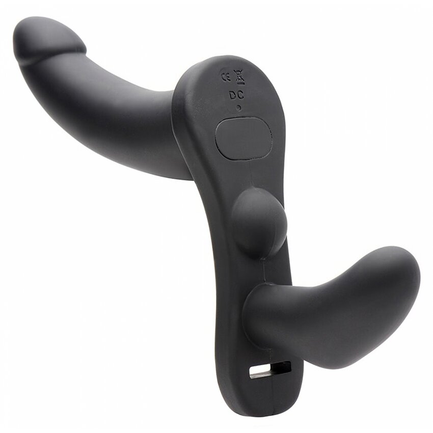 Acest set de dildo și ham cu două capete vă tratează pe amândoi cu vibrații controlate de la distanță.