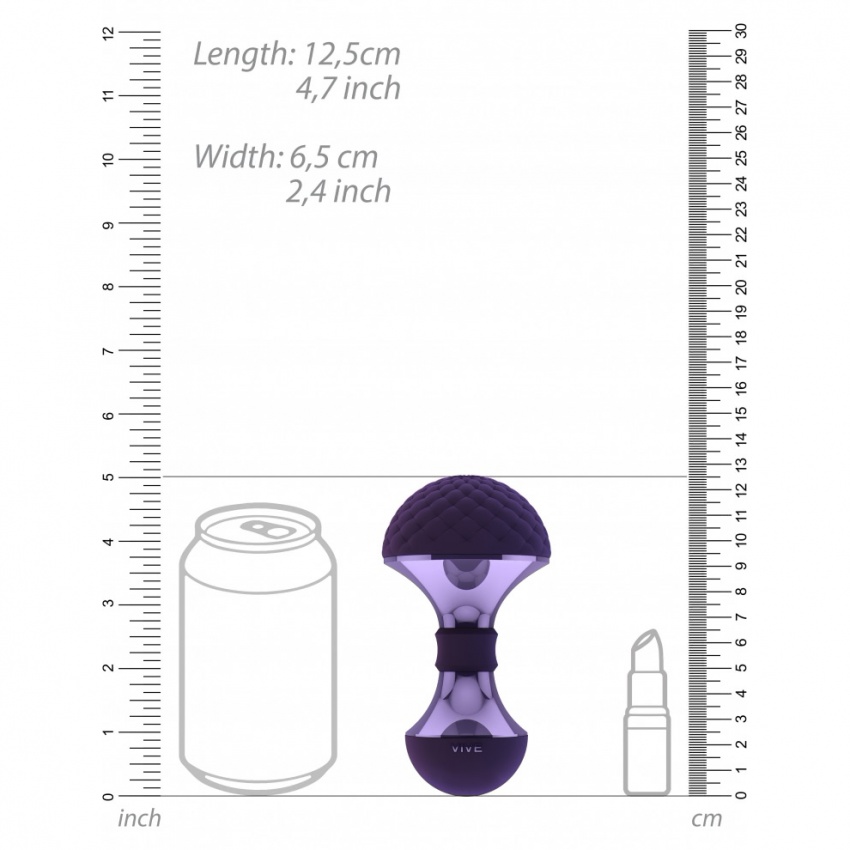 Lungime Totală: 12.5 cm Diametru: 6.5 cm Culoare: Mov Material: Silicon Livrare: Confidențială Rezistent La Apă Reîncărcabil Încărcare Prin USB Brand: Shots