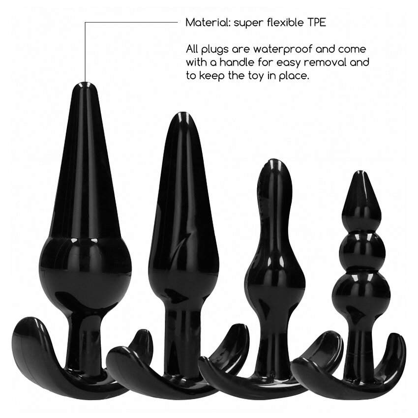 Pentru toți iubitorii de ușile din spate sau cei care doresc să încerce distracție anală, SONO a dezvoltat un set extravagant de 4 piese de plug anal! Fabricate din cauciuc TPE flexibil, destul de rezistent și inodor, aceste dopuri vă vor oferi ore și ore de aventuri anale amoroase!