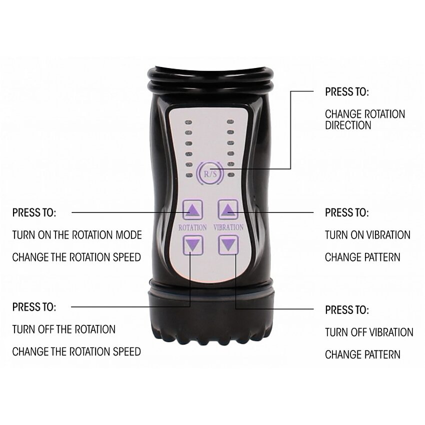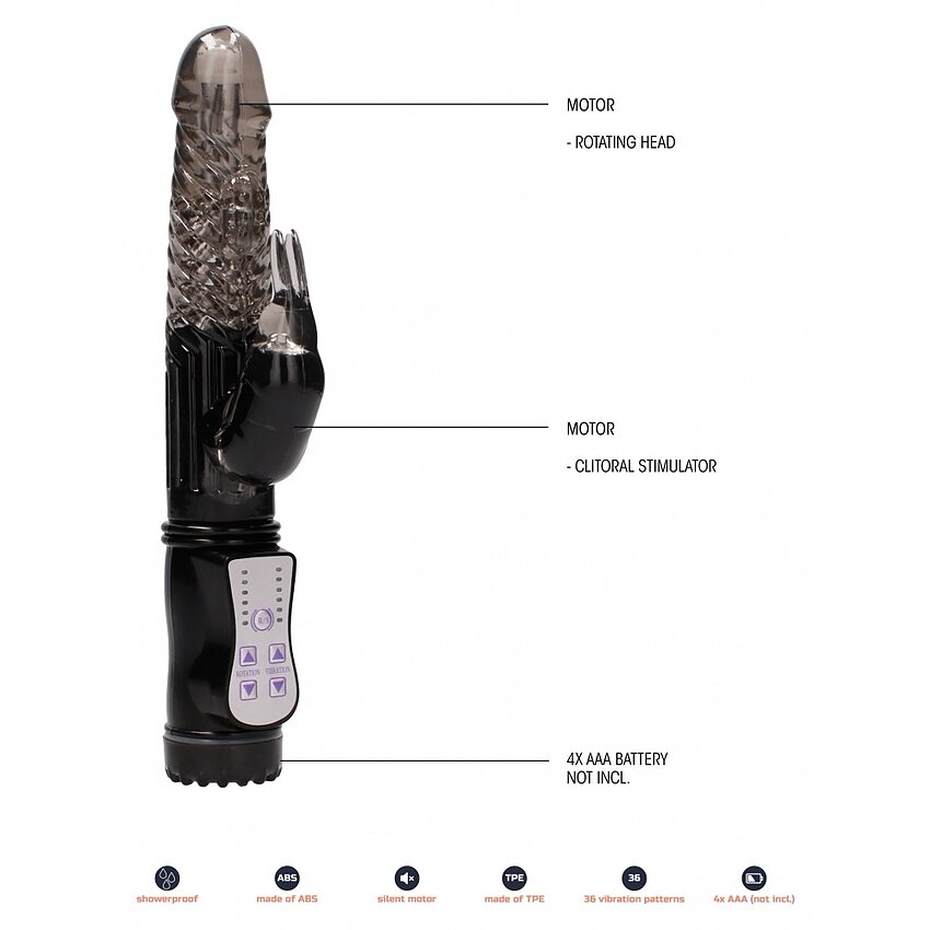 De asemenea, puteți porni iepurele, făcându-i să vibreze vârful. Acest iepure are 36 de setări. De asemenea, puteți controla direcția de rotație. Materialul finit functioneaza cu 4 baterii de tip AAA care vor fi cumparate impreuna cu produsul.
