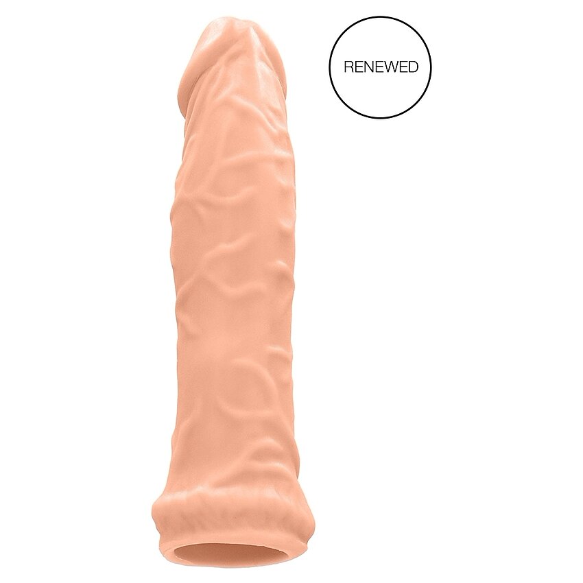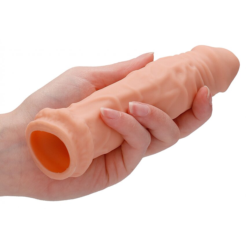 Prelungitor Falus Sleeve 7 transmite plăcerea unei pătrunderi mai adânci. Extensorul de sex este din material ultraperformant TPE foarte moale, se așează peste penisul prietenului și formează a doua epidermă naturală este întocmai ca în viața reală. Oferă cele mai mari plăceri ambilor parteneri.