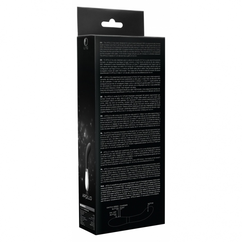 Această jucărie frumoasă este reîncărcabilă prin cablul USB inclus. O încărcare de 30 de minute vă va dărui 60 de minute de plăcere nestăpânită! APOLLO are 21 cm înălțime și un diametru de 3,6 cm.