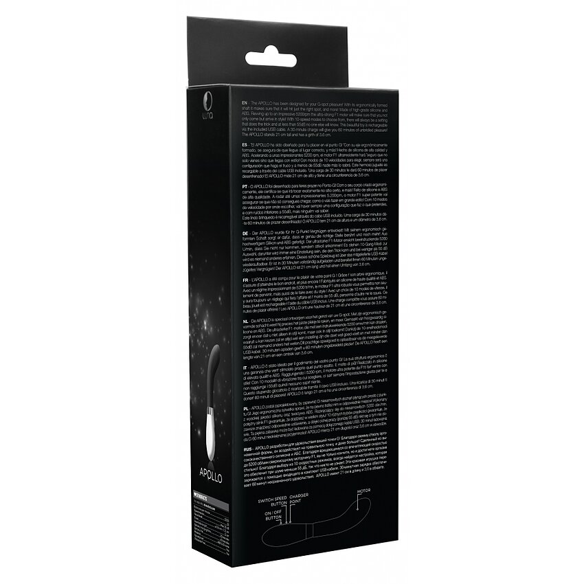 Această jucărie elegantă este reîncărcabilă prin cablul USB inclus. O încărcare de 30 de minute vă va oferi 60 de minute de plăcere nestăpânită! APOLLO are 21 cm înălțime și un calibru de 3,6 cm.