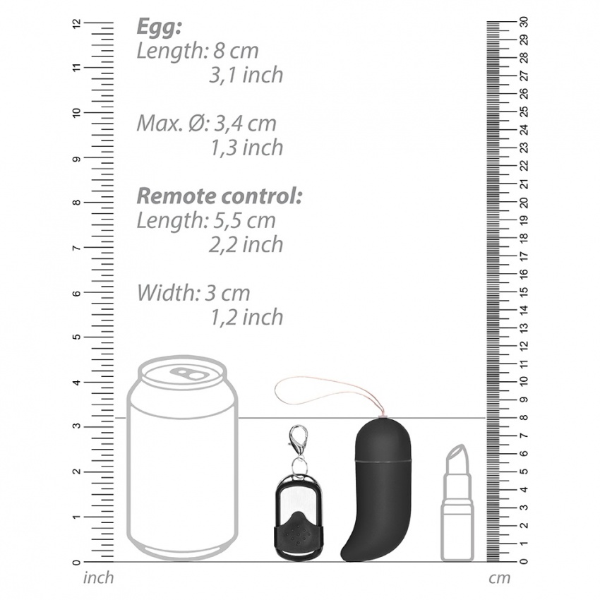 Lungime Totală: 8 cm Diametru: 3.4 cm Culoare: Negru Material: ABS Livrare: Confidențială Are Telecomandă Brand: Shots