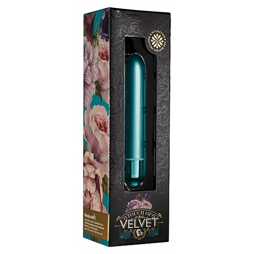 Vibratorul Touch of Velvet este meșteșugit din ABS și are 9 cm lungime iar diametrul de 1.5 cm. Materialul este dur, ceea ce face jucăria destul de rezistentă, însă este fin și plăcut la atingere, pentru a oferi o pătrundere plăcută.