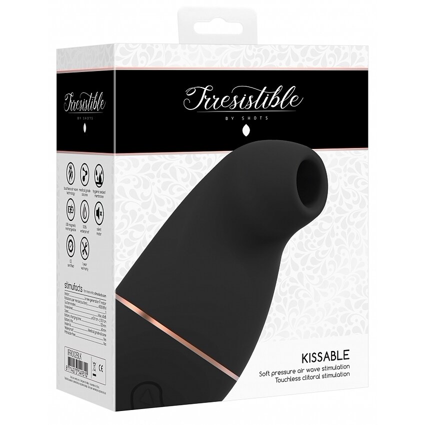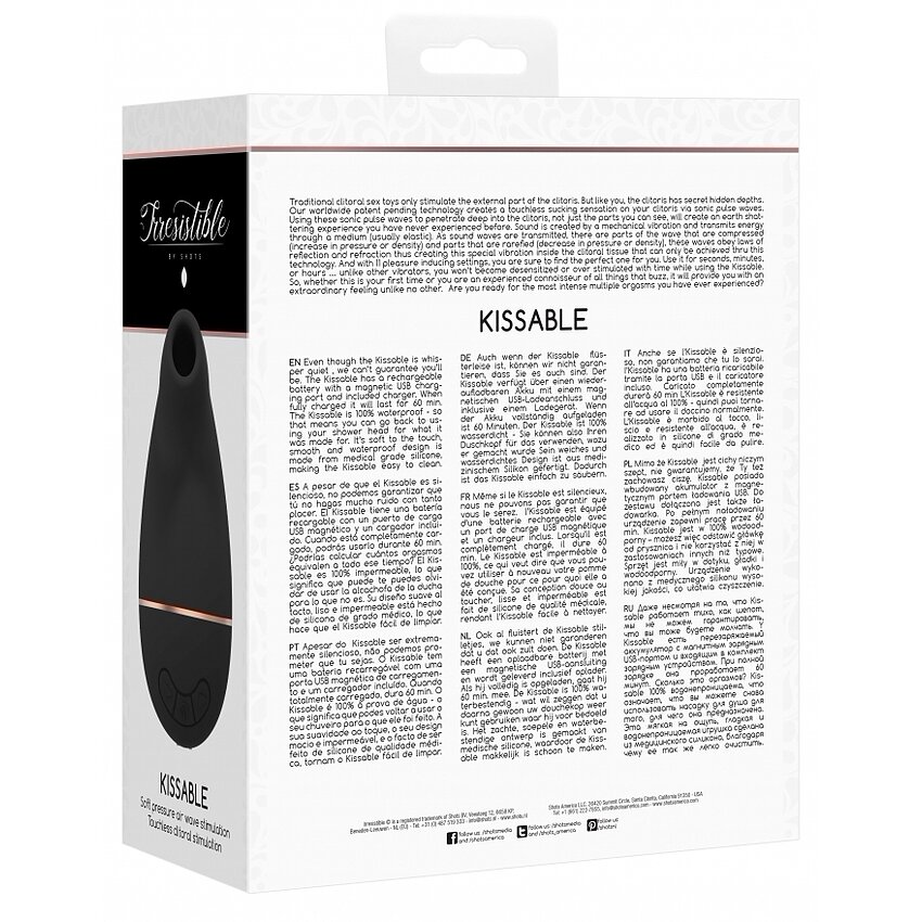 Vibrator Pentru clitoris Kissable va înconjoară clitorisul fără să-l atingă și îl stimulează prin valuri de aer de presiune moale, care constituie o vibrație unică care pătrunde în țesut, care nu poate fi obținută fără utilizarea acestei tehnologii.