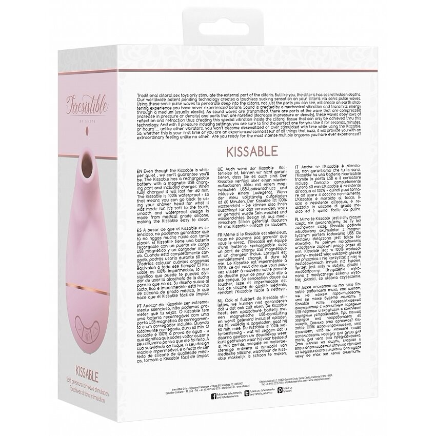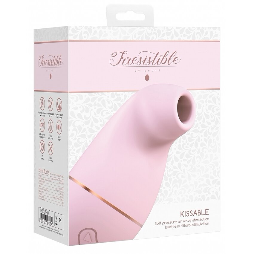 Vibrator Kissable Irresistible va înconjoară clitorisul minus să-l atingă și îl provoacă prin valuri de aer de presiune moale, care constituie o vibrație unică care pătrunde în țesut, care nu poate fi obținută excluzând utilizarea acestei tehnologii.