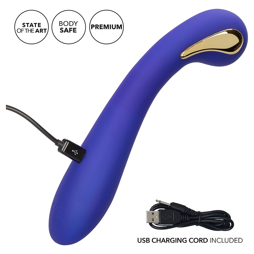 Lungime Totală: 19 cm Lungime Inserabilă: 14 cm Diametru: 3.75 cm Culoare: Albastru Material: Silicon Livrare: Confidențială Are acumulator cu Lithium Ion Are vibrații Sigur pentru corp 5 nivele de viteză 7 tipuri de vibrații Bateriile sunt incluse Rezistent La Apă Reîncărcabil Încărcare Prin USB 12 tipuri de vibrații Brand: CalExotics