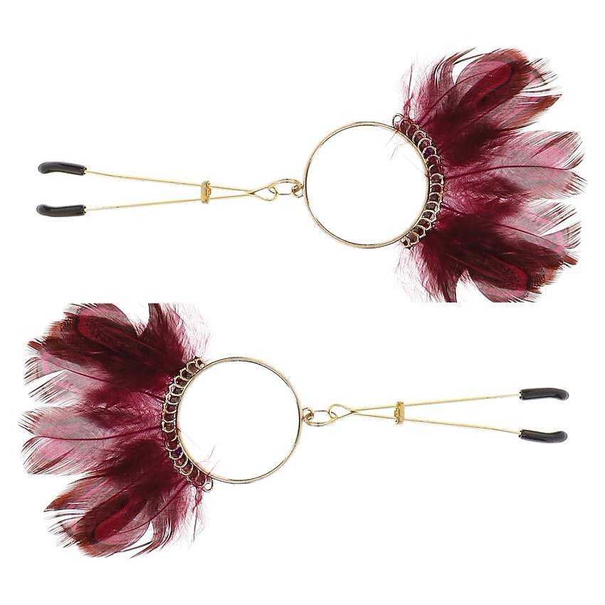 Aceste cleme sunt bijuterii ce decorează elegant sânii, dar oferă în același timp emoții intense în timpul jocului senzual. Fabricate în special pentru jocurile de robie, aceste Cleme pentru Sfârcuri cu Pene Roșii sunt ideale pentru începători, căci inelul de prindere se reglează ușor îngăduie iubitorilor de fetish să experimenteze variate nivele de tensiune.