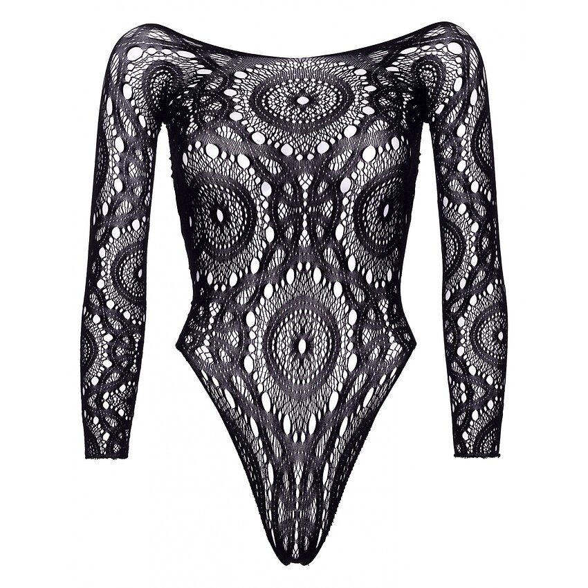 Marime: S-M Culoare: Negru Material: 94% Poliamidă, 6% Spandex Livrare: Confidențială Model atractiv și foarte feminin Se spală la maxim 30 grade Nu se poate usca în uscător Nu poate fi dus la curățătorie Nu poate fi folosit fierul de călcat Ambalaj de lux Are închidere inghinală Se poate înălbi dar fără clor Model cu dantelă Cu mâneci lungi Are spatele gol până jos Brand: Leg Avenue