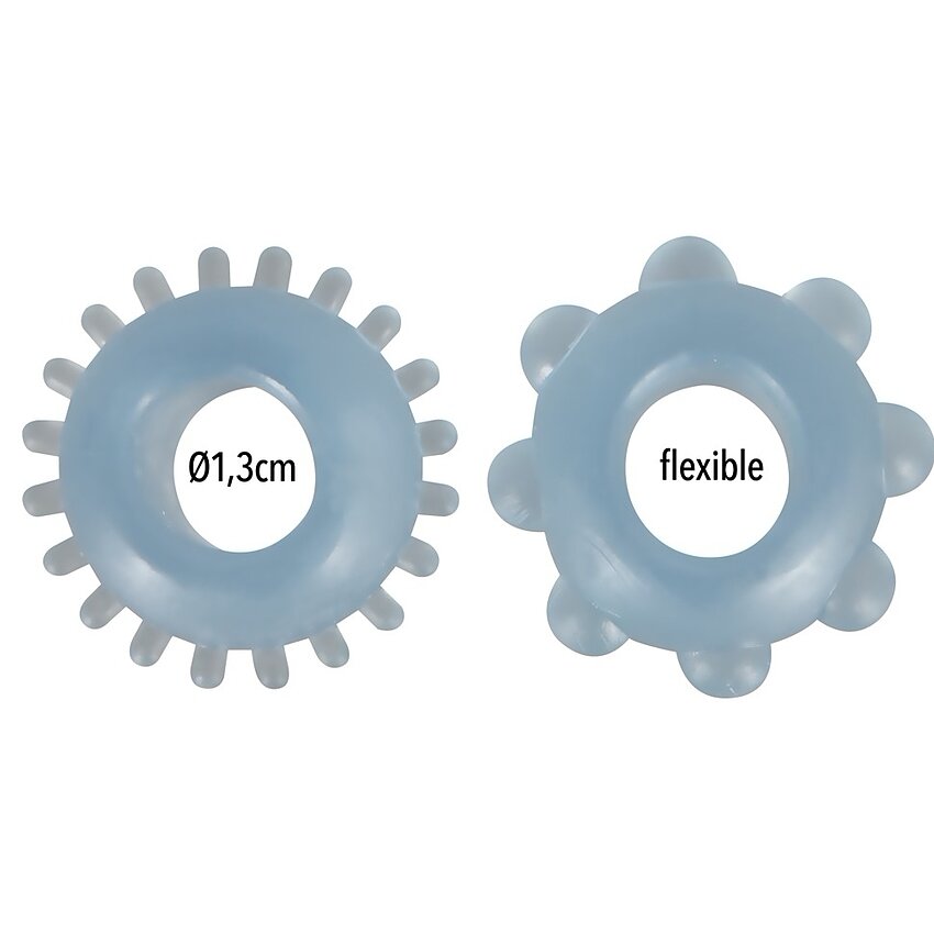Set Inele Sex You2Toys este un set format din 2 inele pentru penis ce au 1.3 cm în diametru. Fiind făcute din TPE, un material moale, sunt extrem flexibile, astfel că pot fi folosite chiar și de persoanele bine dotate.