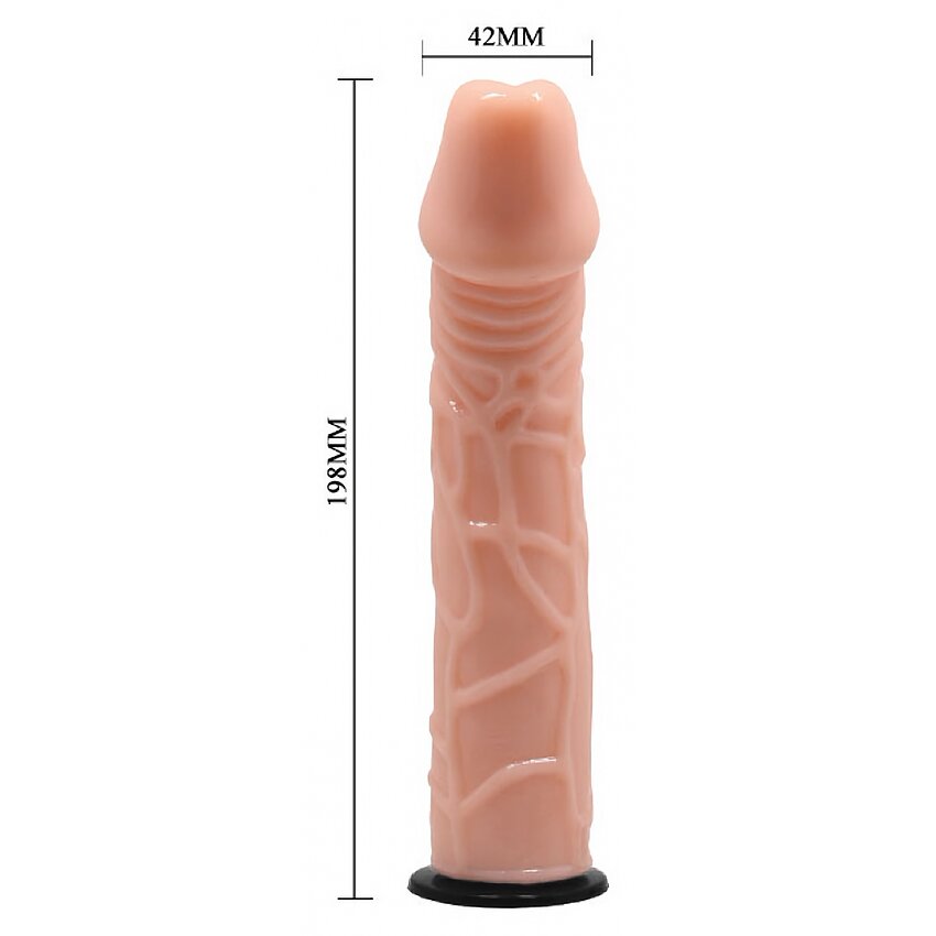 Dildo-ul strap on-ului are o lungime de 19,8 cm și un calibru de 4,2 cm. Culoarea naturală îi oferă un înfățișare foarte plăcut.
