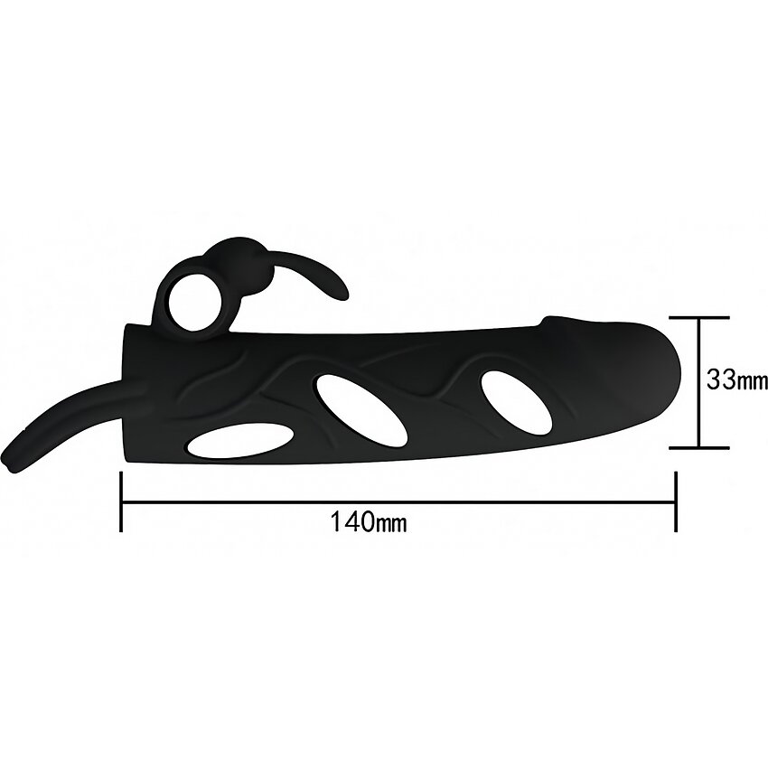 Prelungitor Penis Pretty Love With Ball Strap transformă membrul dumneavoastră într-o adevărată mașinărie a plăcerii! Prelungește penisul cu 2,5 centimetri, acoperă penisul cu o textură din silicon cu cute pentru senzații de stimulare, iar la bază este prevăzut cu un iepuraș - stimulator pentru clitoris cu vibrații.