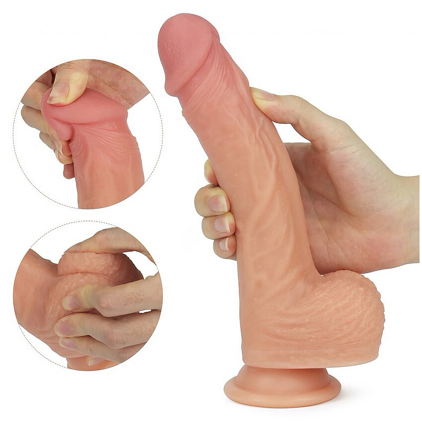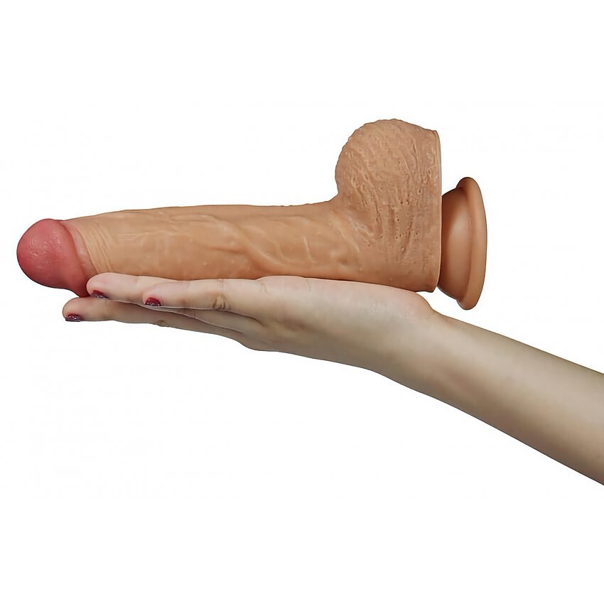 La bază este prevăzut cu o ventuză cu ajutorul căreia se poate lipi de orice arie plană și lucioasă. Are testicule realistice pe care le poți folosi pe post de mâner.
