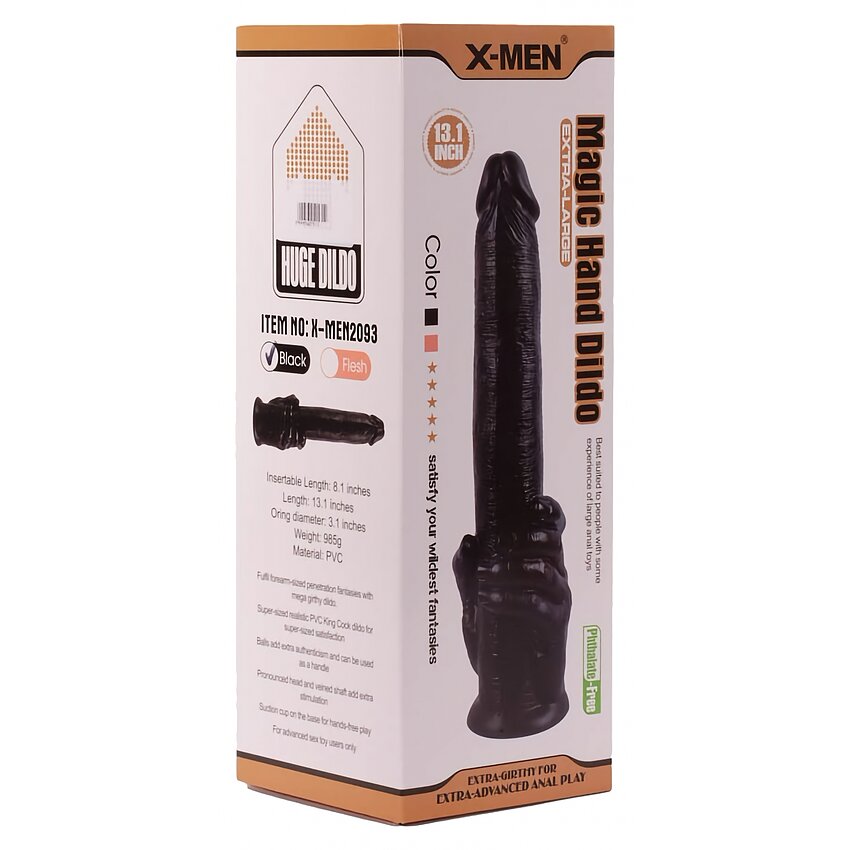Lungime Totală: 33.3 cm Lungime Inserabilă: 20.5 cm Diametru: 5.5-7.8 cm Culoare: Negru Material: PVC Livrare: Confidențială Are Ventuză Brand: X-Men