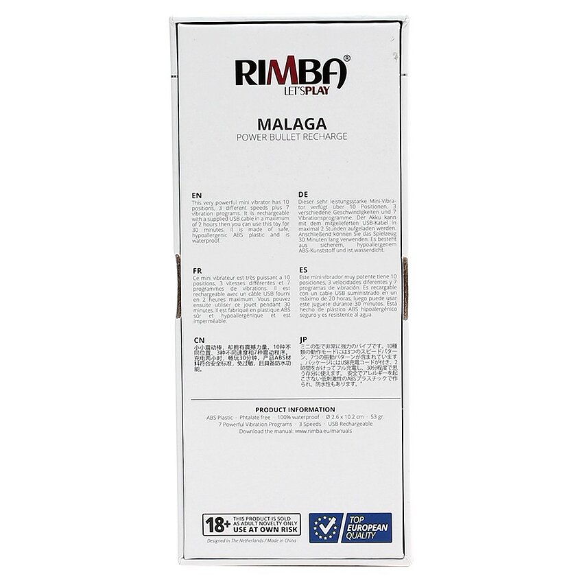 Minivibratorul foarte voinic Rimba Malaga are 3 viteze diverse și 7 maniere de vibrații.