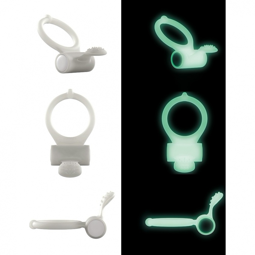 Inelul Dorcel Power Clitoris Fosforescent poate fi purtat cu vibratorul în spatele testiculelor, punând la dispoziție vibrații la perineu.
