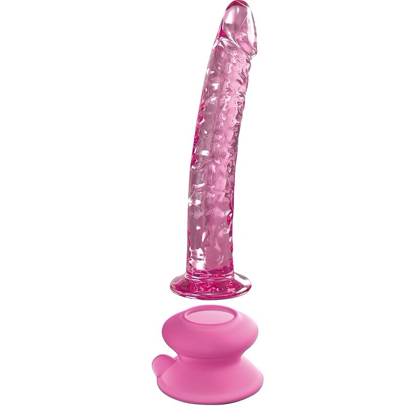 Lungime Totală: 17.0 cm Lungime Inserabilă: 15.5 cm Diametru: 3.0 cm Culoare: Roz Material: Sticla, Silicon Livrare: Confidențială Forma Anatomică Sigur pentru corp Flexibil Are Ventuză Brand: Icicles