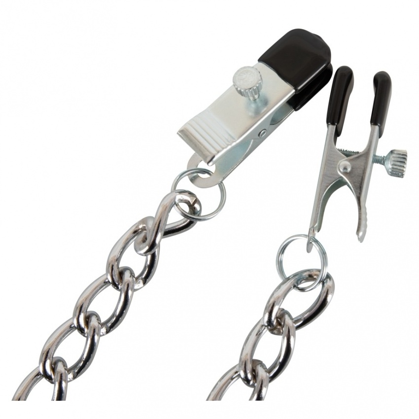Lanțul cu cleme reglabile pentru mameloane Bad Kitty este un accesoriu sexual și pentru BDSM, grațios și de nelipsit din arsenalul de jucării erotice.