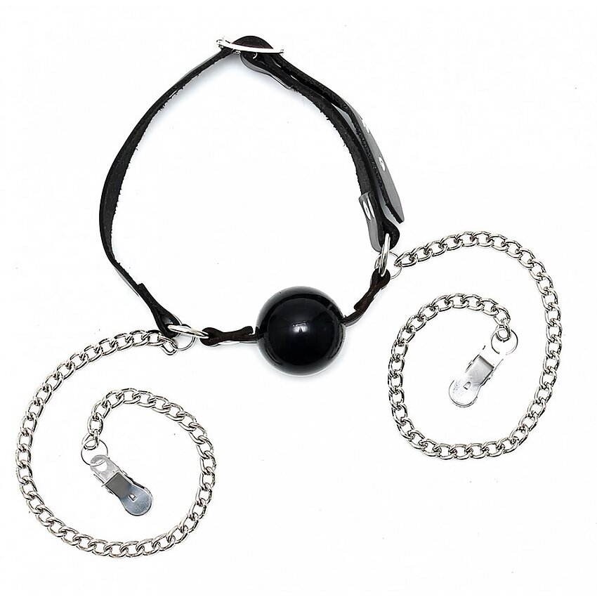 Căluș Cu Cleme pentru Mameloane este un set unic produs pentru pasionații de BDSM, fiind format dintr-un căluș legat de două clame pentru sfârcuri.