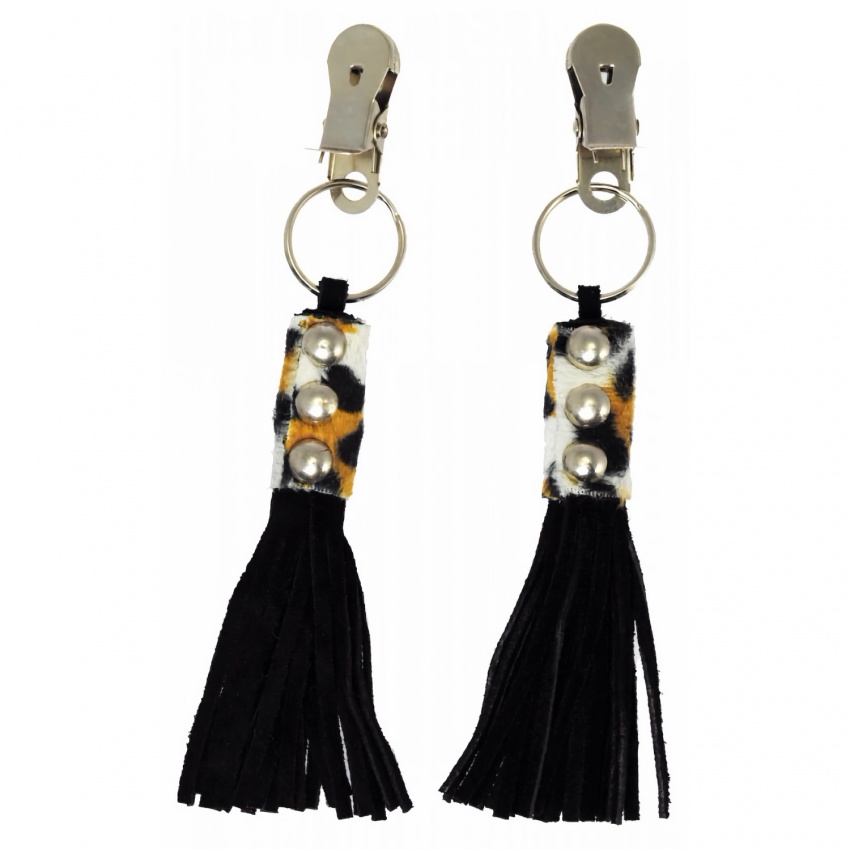 Clemele metalice aduc o prindere sigură și confortabilă, ce oferă strângere fermă și satisfăcătoare și crește răspunsul erotic atunci când sunt eliberate mameloanele. Designul jucăuș cu ciucuri negri franjurați și imprimeu leopard, transformă aceste Cleme pentru Sfârcuri din Epidermă Rimba într-un accesoriu erotic suculent.