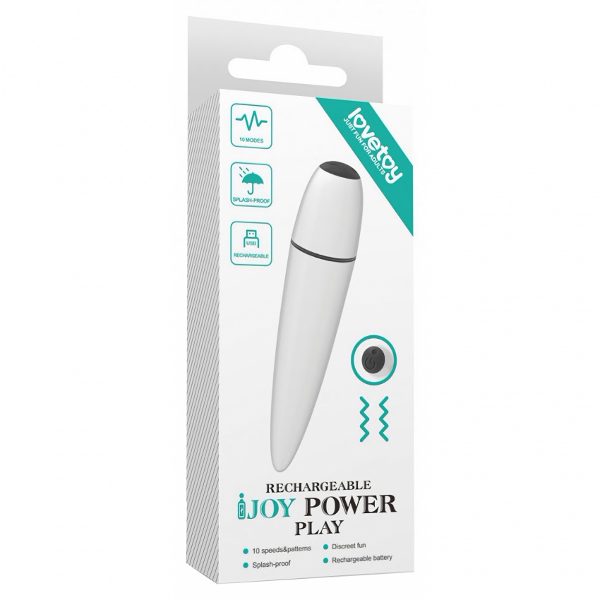 Vibratorul iJoy Power Play este confecționat din ABS și are 10.5 cm extindere iar un diametru de 2 cm. Cu toate că este mic și discret, motorul său este suficient de intens pentru a satisface indiferent ce femeie.