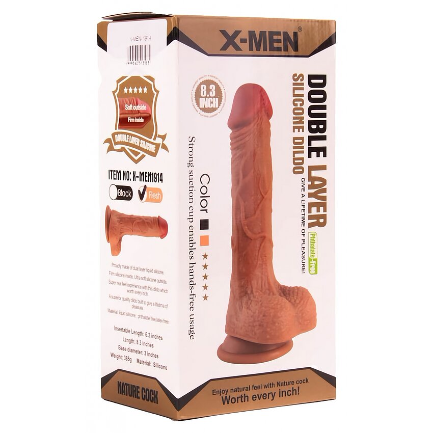 X-MEN 8.3 inch Double Layer Silicone Dildo Brown Natural